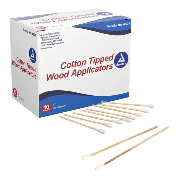 Cotton Tipped Wood Applicators 3inch Non-Sterile 4301 10Ea/Pouch 10Pch/Bx 10Bx/Cs