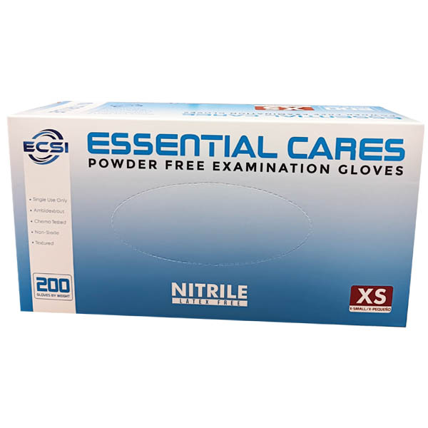 Nitrile Glove Powder-Free Finger Textured Blue Essential Cares X-Small 200pc/Bx 10Bx/Cs