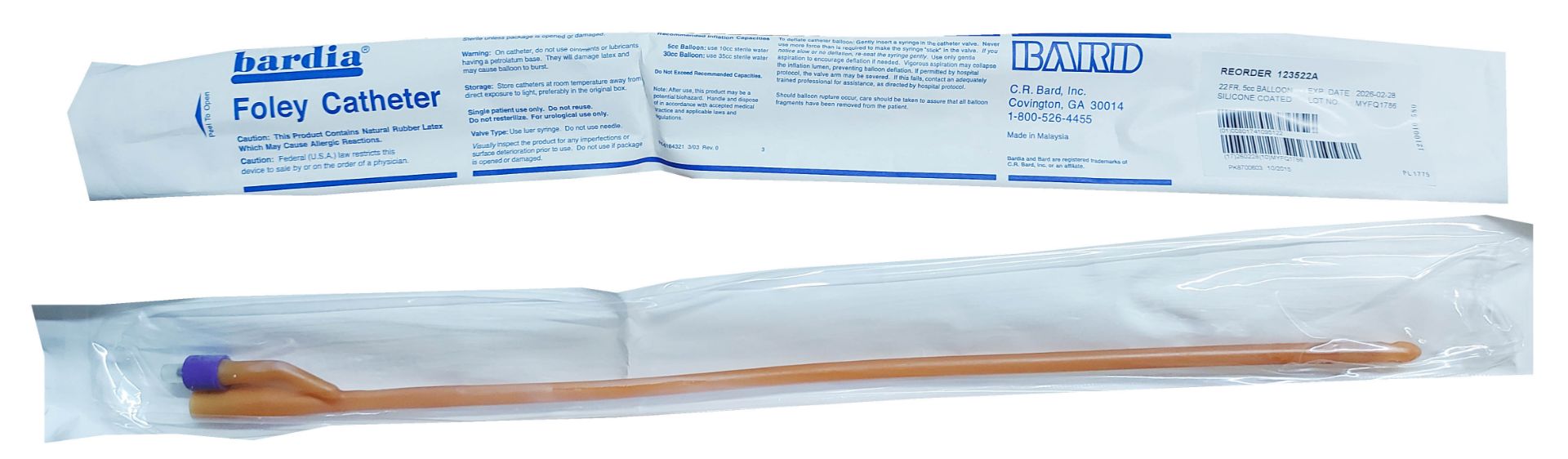 Catheter Foley Sterile 2 Way 22FR 5cc Balloon Silicone Coated 123522A 12Ea/Bx