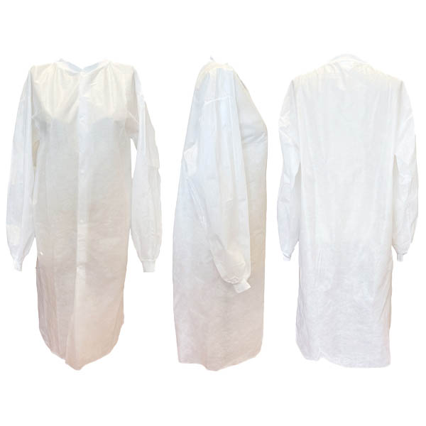 Lab Coat SMS White Knit Cuff Knit Collar No Pocket Small Essential Cares 10pc/Bg 3Bg/Cs