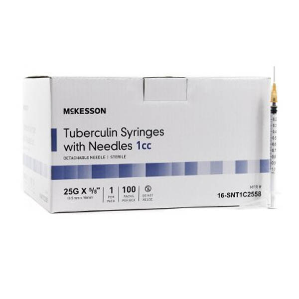Syringe With Hypodermic Needle 1cc 25Gx5/8in McKesson 100Ea/Bx 10Bx/Cs (MK)